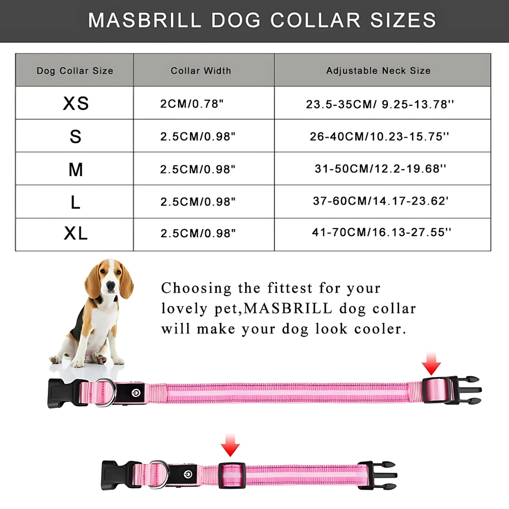 Rechargeable LED Dog Collar – Reflective Night Safety Visibility – Waterproof Nylon – USB Light‑Up Adjustable (S–L) – Small to Large Dogs